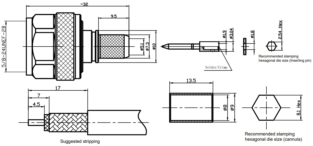 • Способ монтажа на внешнюю оболочку и оплетку кабеля - обжимная втулка